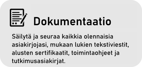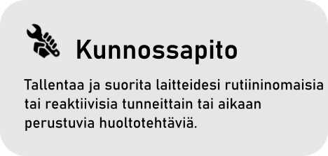 Saat välittömästi tietoa laitteiden huoltohistoriasta, turvatarkastuksista ja toimittajista.